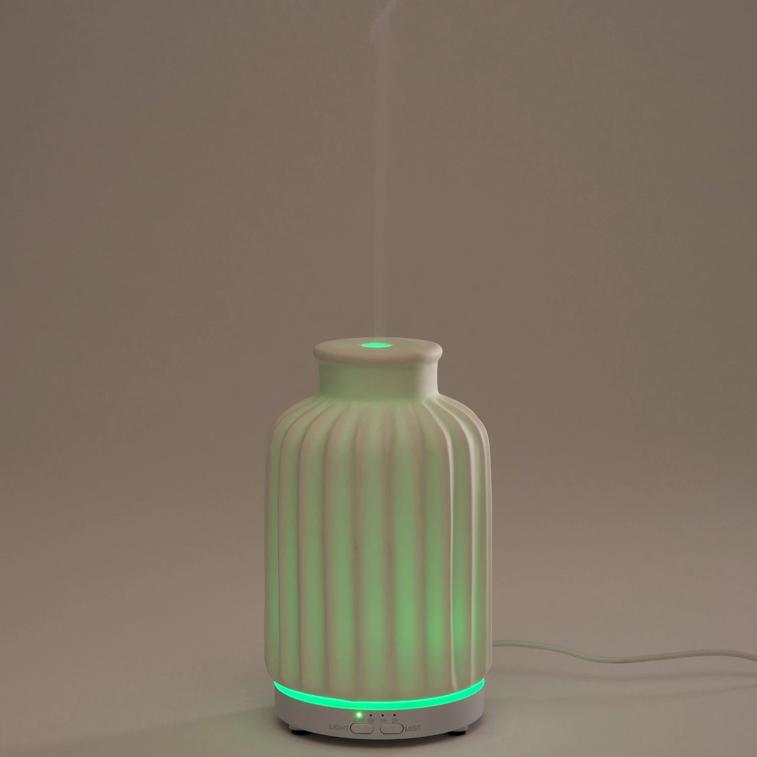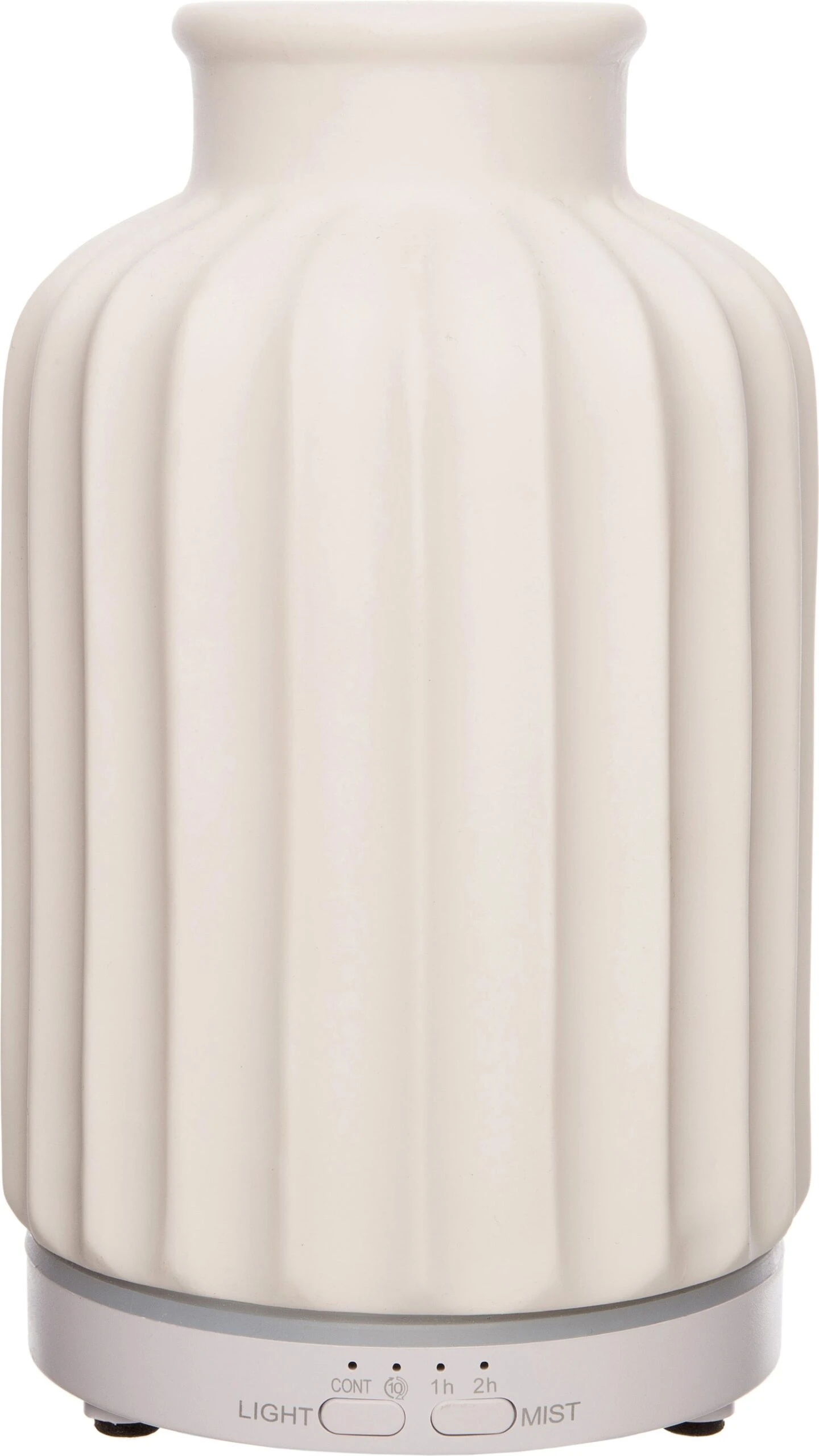 Deze Intratuin geurverspreider met LED verlichting is een echte aanwinst voor je interieur. Het heeft de vorm van een vaas in de kleur wit en een verticaal ribbelpatroon. De gekleurde LED verlichting geeft de geurverspreider een extra mooi effect. Gebruik maar enkele druppels van je favoriete etherische olie in het waterreservoir van 80 ml. Zo wordt er, via een ultrasone techniek, een heerlijke geur in de ruimte verspreidt. Hiermee kan je ook minder prettige geuren verbergen. Met de fluisterstille ultrasone technologie werkt deze geurverspreider zo stil dat je het amper opmerkt. Ideaal voor op kantoor, in de yogastudio of de kinderkamer. De diameter is 12 cm en de hoogte is 17 centimeter.