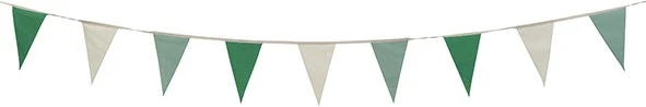 Versier je kamer of terras met deze speelse vlaggenlijn! Hij is gemaakt van katoen in de kleuren blauw, groen en wit. De vlaggenlijn heeft een lengte van 600 cm. Doordat hij aan het uiteinde lusjes heeft is de lijn makkelijk te bevestigen aan bijvoorbeeld aan de balustrade van het balkon, schutting of muur.