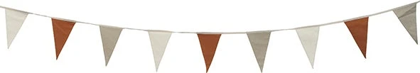 Versier je kamer of terras met deze speelse vlaggenlijn! Hij is gemaakt van katoen in de kleuren terracotta, grijs en wit. De vlaggenlijn heeft een lengte van 600 cm. Doordat hij aan het uiteinde lusjes heeft is de lijn makkelijk te bevestigen aan bijvoorbeeld aan de balustrade van het balkon, schutting of muur.