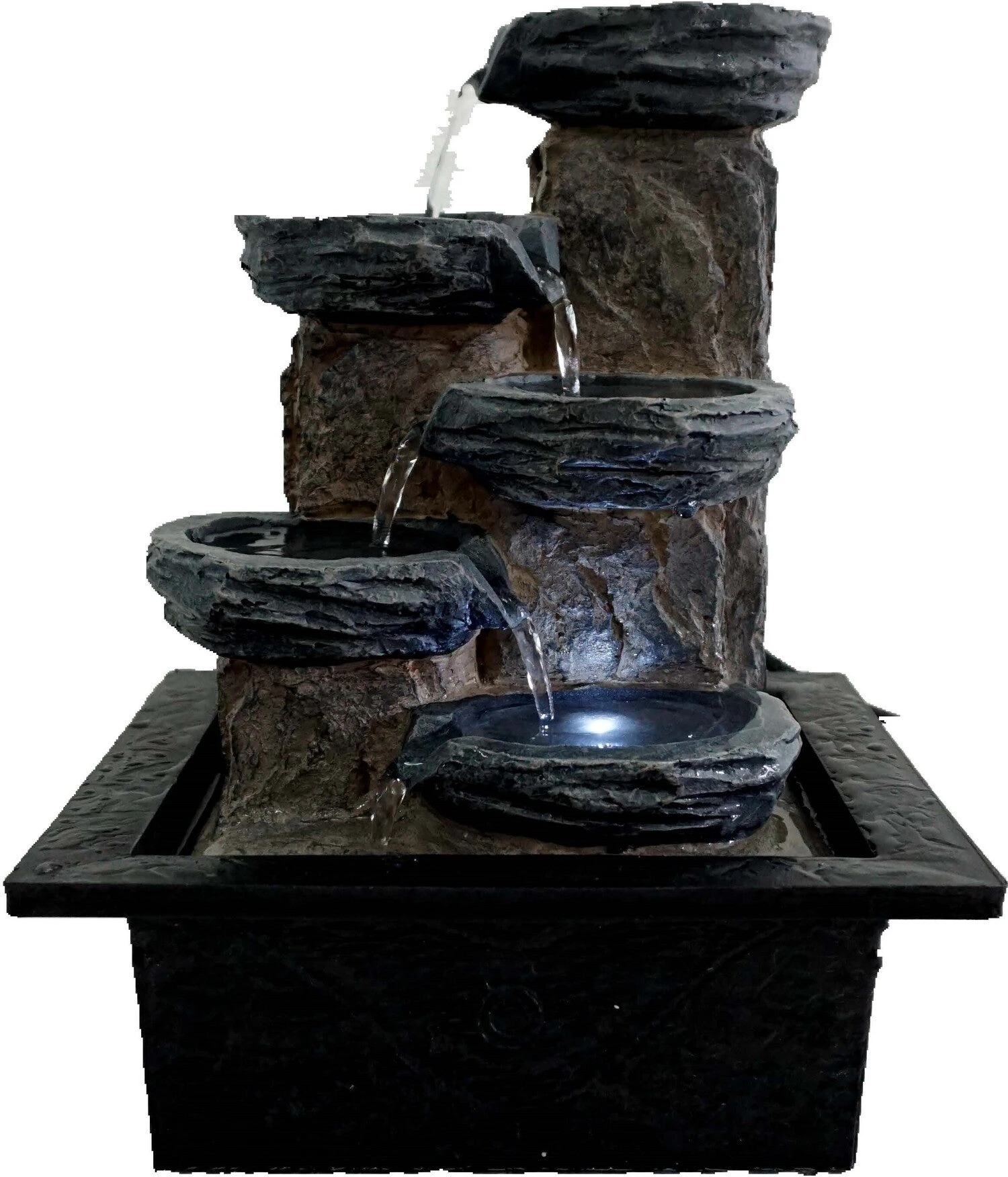 Met waterornament Furano kan je op een creatieve manier water toevoegen aan de tuin. Daarnaast zorgt deze fontein binnen voor een extra dimensie en nog meer sfeer in je woonkamer! Het waterornament van Intratuin is gemaakt van polyresin in de kleuren, zwart, grijs en bruin met reliëf. De fontein bestaat uit 4 schalen die het water rustig naar beneden laten stromen. Dit zorgt voor een natuurlijk geluid om helemaal tot rust te komen. De ingebouwde LED verlichting heeft de kleur koud wit en zorgt er voor dat je waterornament er ’s avonds in het donker ook mooi bij staat. De afmetingen zijn 21 x 18 x 27,5 cm. Geniet van al het moois om je heen!