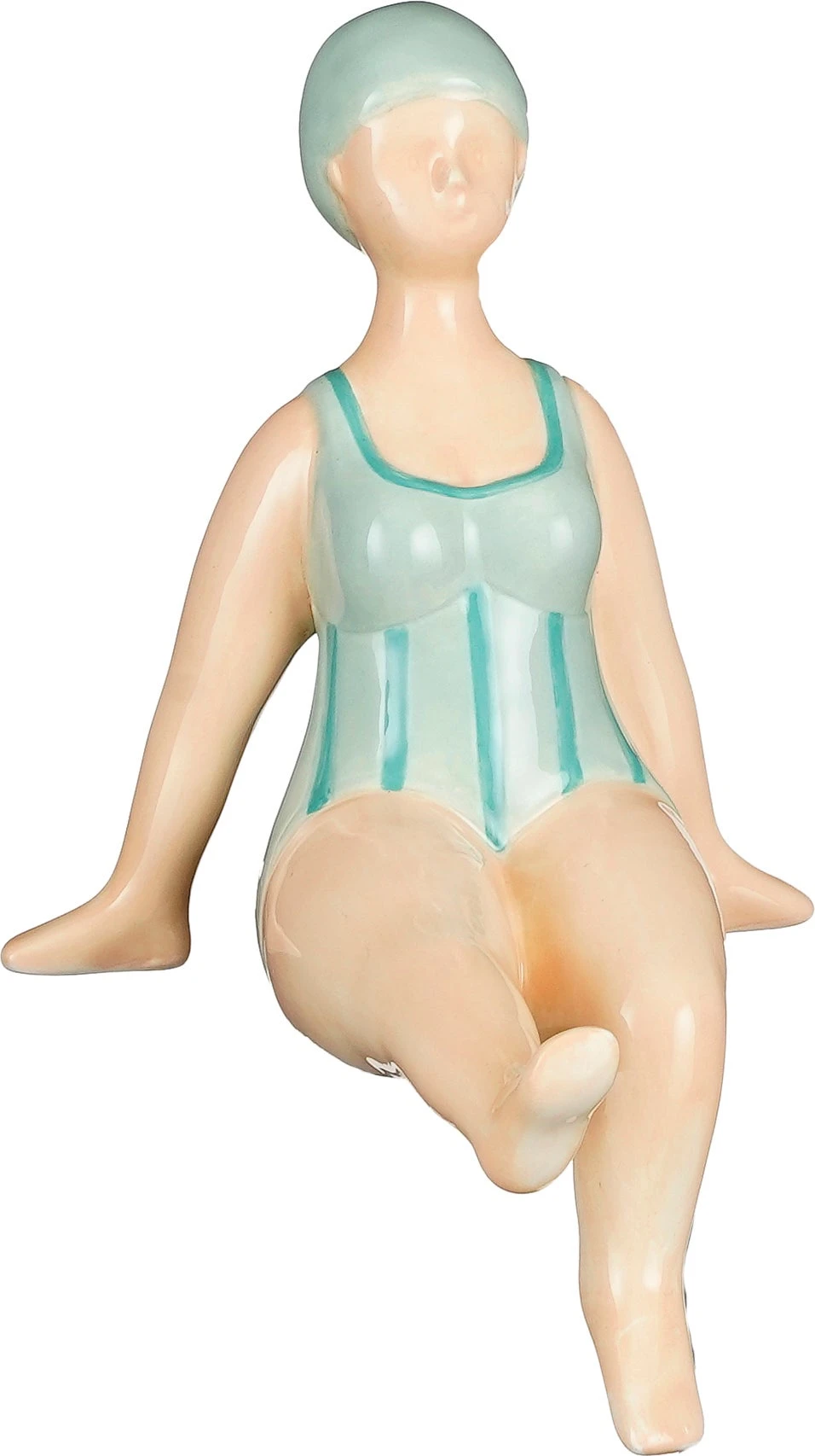 Dit beeld uit de collectie van Mica Decorations is een aanwinst voor ieder interieur. Het beeld is gemaakt van keramiek en heeft de vorm van een zittende vrouw in een badpak. De natuurlijke look en lichtblauwe kleur maakt dat dit beeld super te combineren is met verschillende woonstijlen. De afmetingen van dit beeld zijn 11 x 13 x 18 cm.